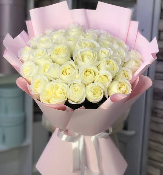 Прекрасный букет из 35 белых роз с доставкой по г Рудный: вы можете заказать букет в салоне цветов «Цветоландия» по цене за 28000 тенге.